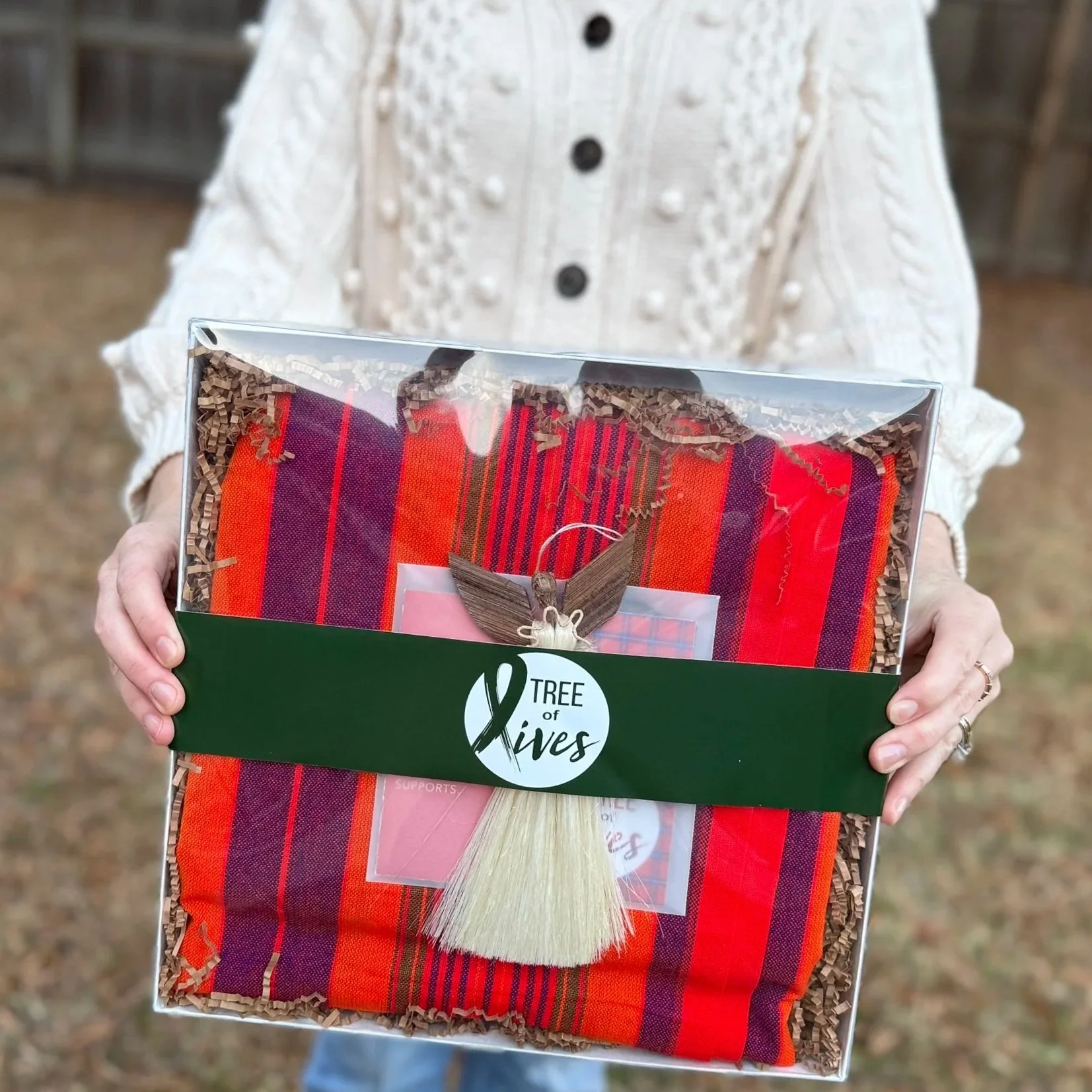 Purchase a Box of Love from Tree of Lives—packed with handmade African crafts and a vibrant Masaai blanket. Each Box of Love donation provides the neediest HIV+ patients and their families at the Holy Family Center at Nazareth Hospital in Kenya the following life-sustaining provisions for one month over the Christmas season: rice • wheat flour • corn flour • sugar • salt • beans cooking oil • soap • school shoes • backpack